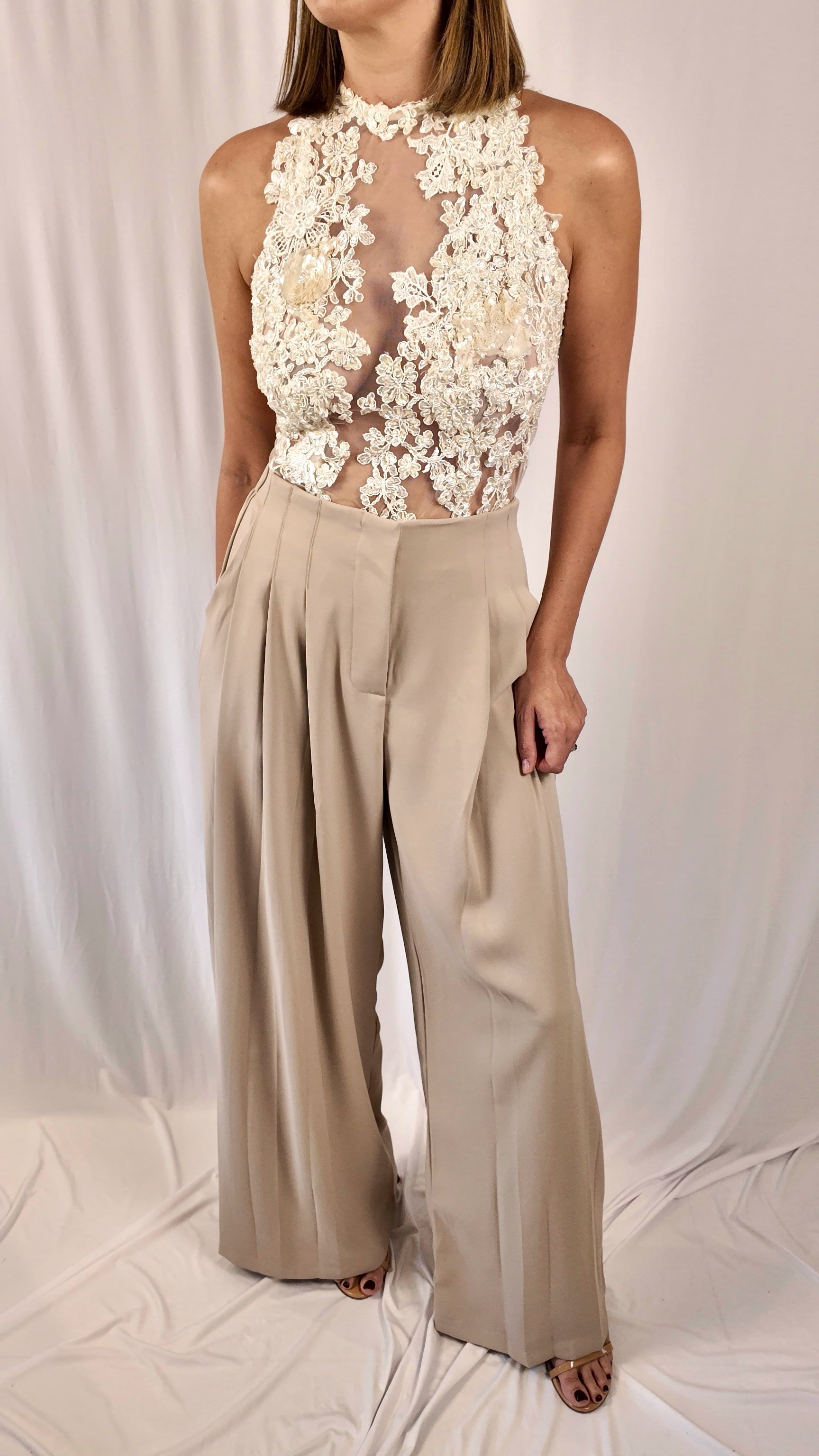 Stone Pleated Trousers